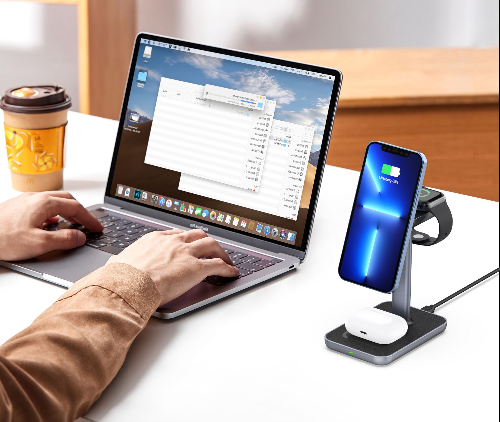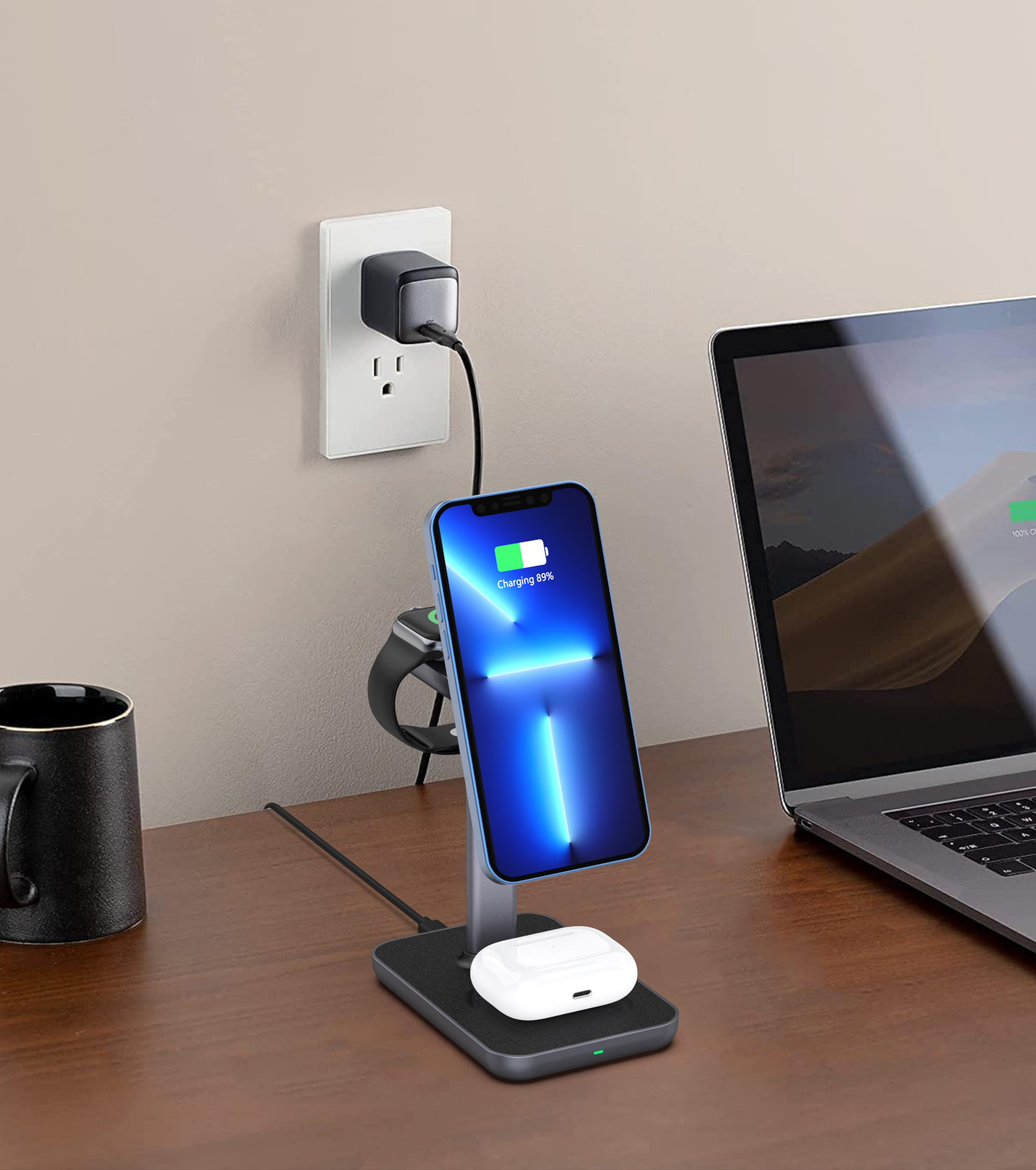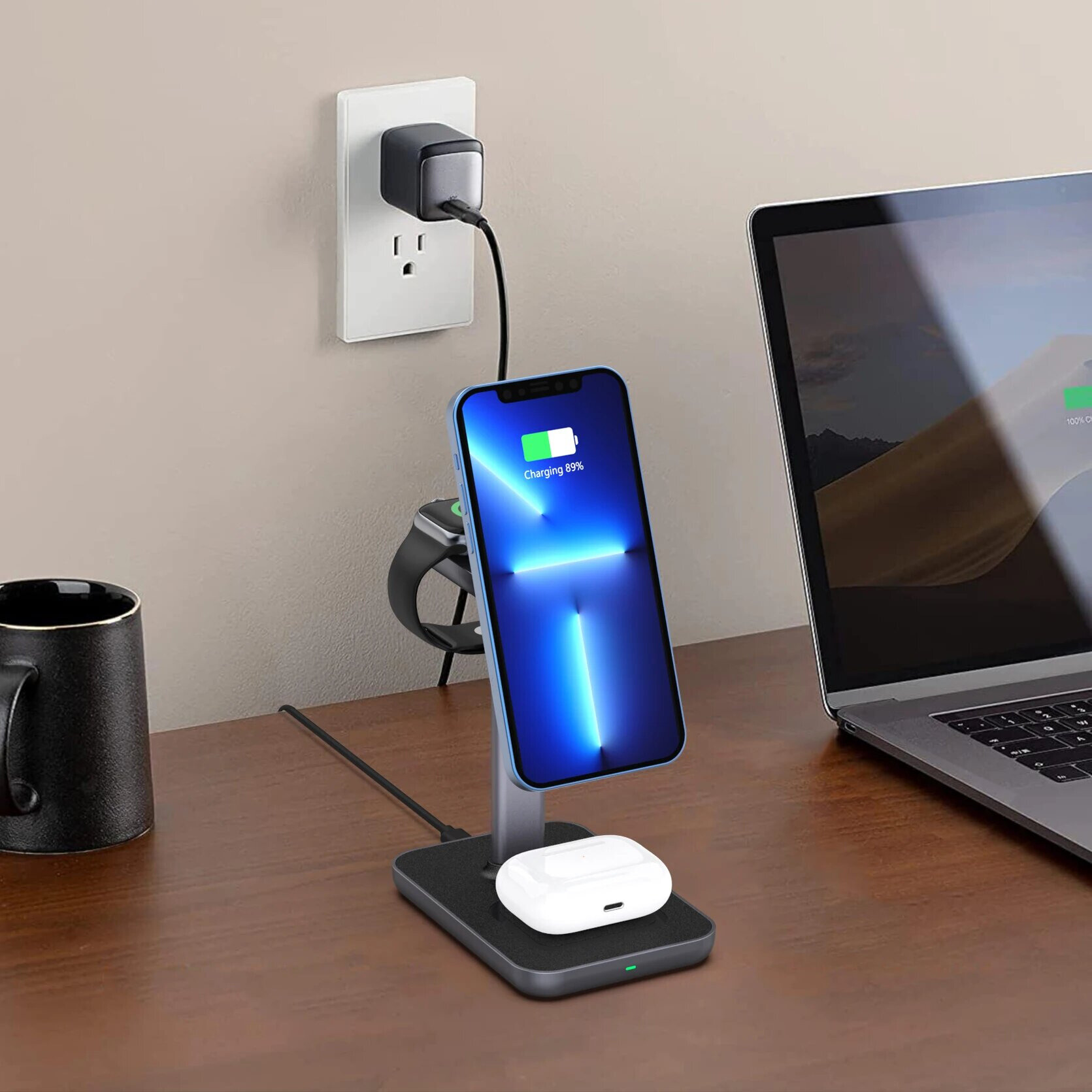 Estación de carga 3 en 1 para dispositivos Apple. Iphone, Apple Watch y AirPods. (Para escritorio)