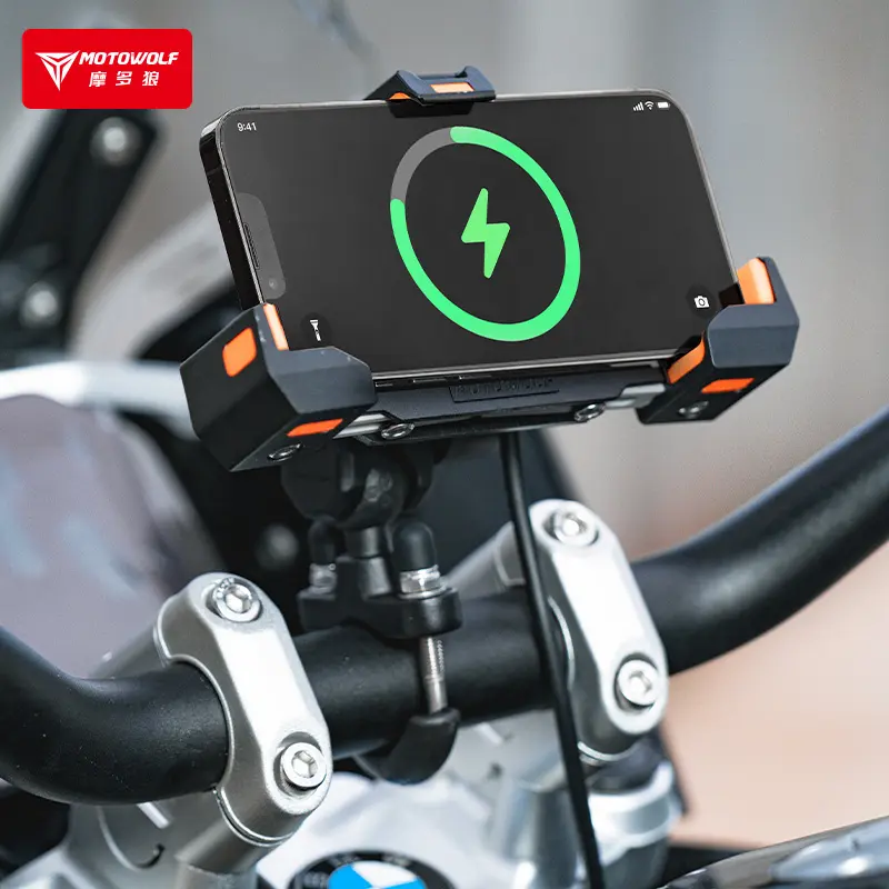 Soporte de celular con cargador inalambrico, puerto usb y sistema antivibración